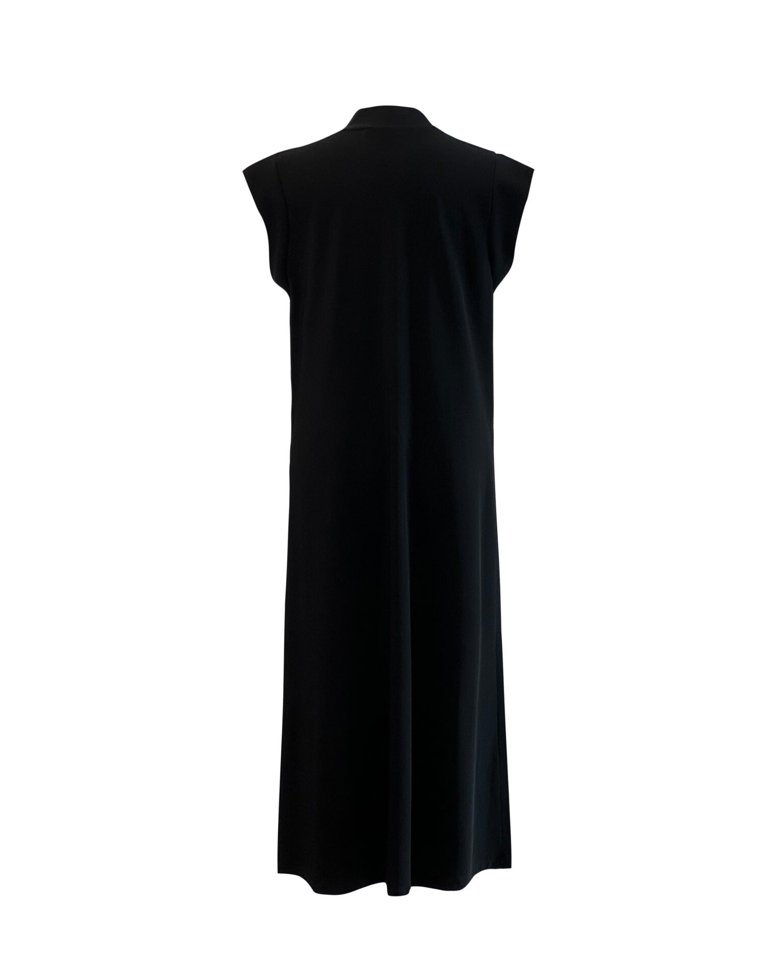 Gilet lungo dalla linea compatta ma fluida, con spalle sottolineate da bordatura per donare alla spalla una linea importante.