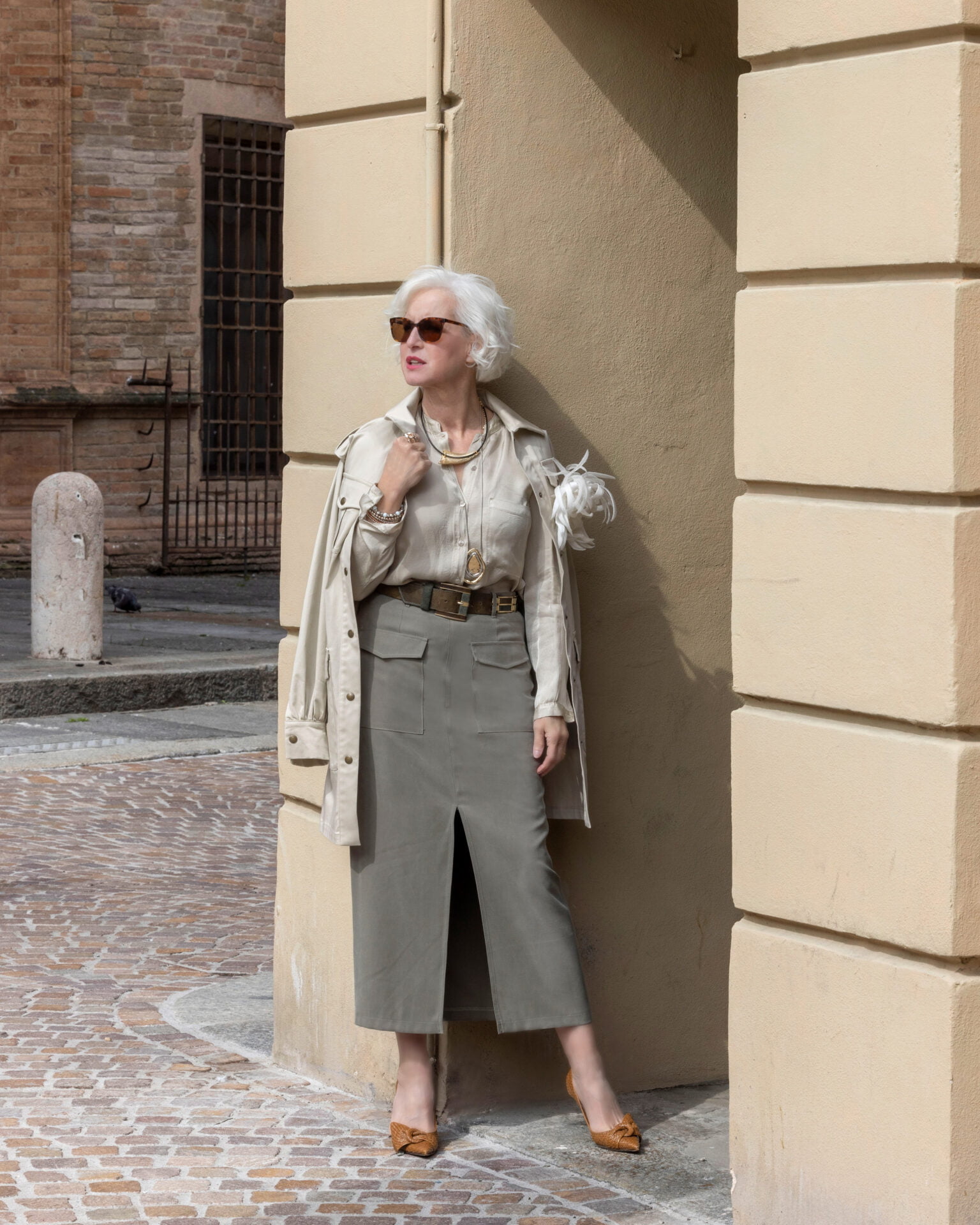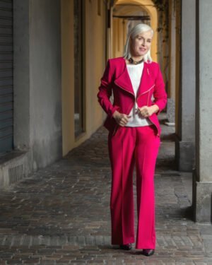 Adatta per la sua vestibilità e il tessuto fluido a corpi baguette e a silhouette proporzionate, può essere indossata con scarpe basse o infradito se la temperatura lo suggerisce oppure stivali al ginocchio.