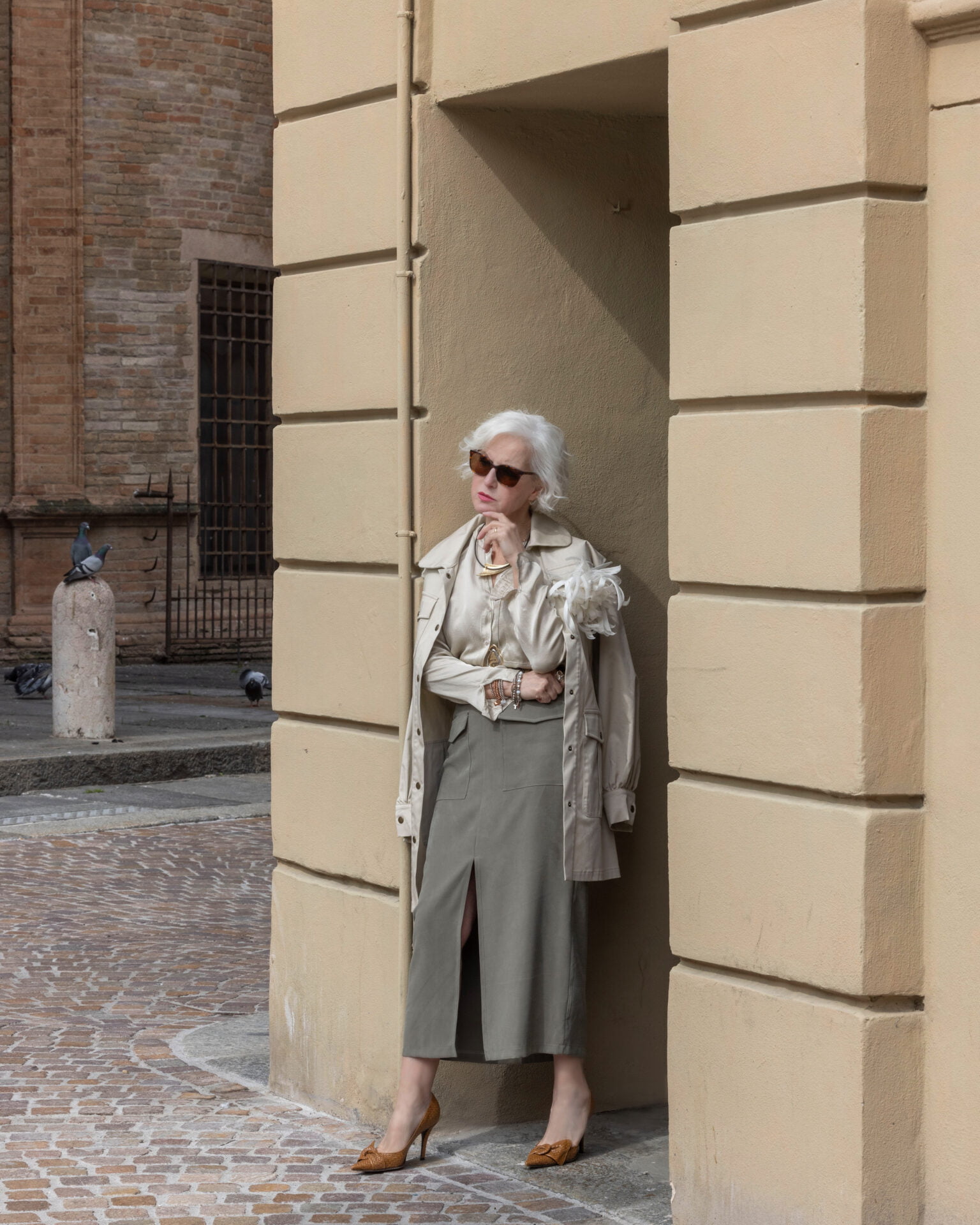 Il colore verde olio, ricorda la natura e suggestioni avventurose, la linea diritta ispira e regala sofisticata seduzione.